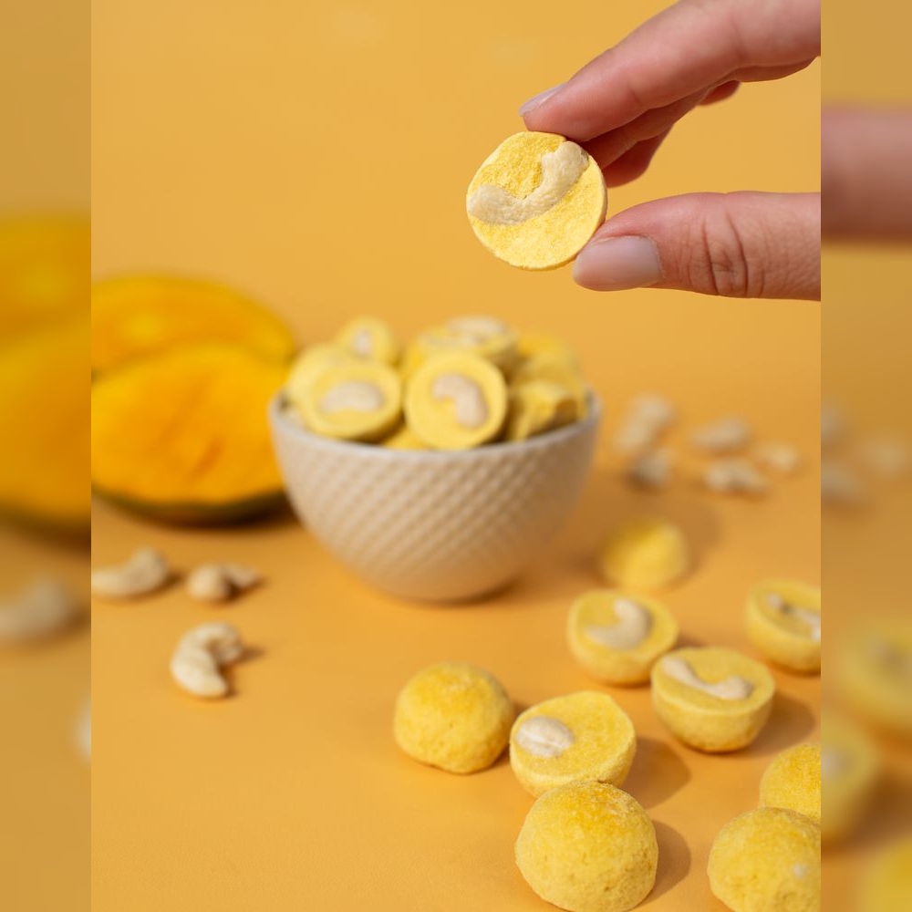 Pokud často snackuješ oříšky, ať už v jogurtu, kaši, nebo jen tak, nenech si ujít naše měsíčky z kešu ořechů posypané ovocným práškem, které tvým sladkým svačinkám dodají nový rozměr. Bez konzervantů, bez umělých barviv, jen 100 % real ingrediencí.