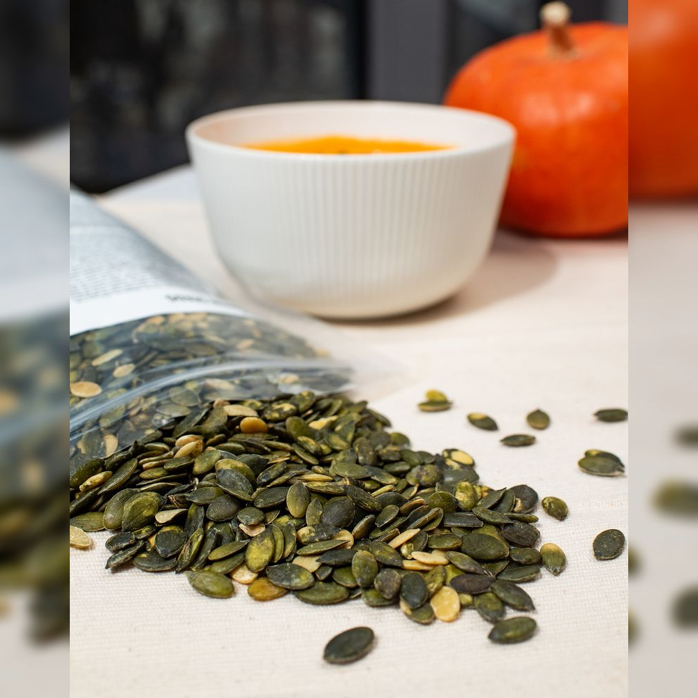 Vilgain Dýňová semínka natural je křupavá dobrota plná zdraví prospěšných látek. Semínka mají oříškovou chuť bez hořkosti.