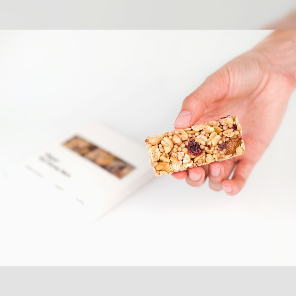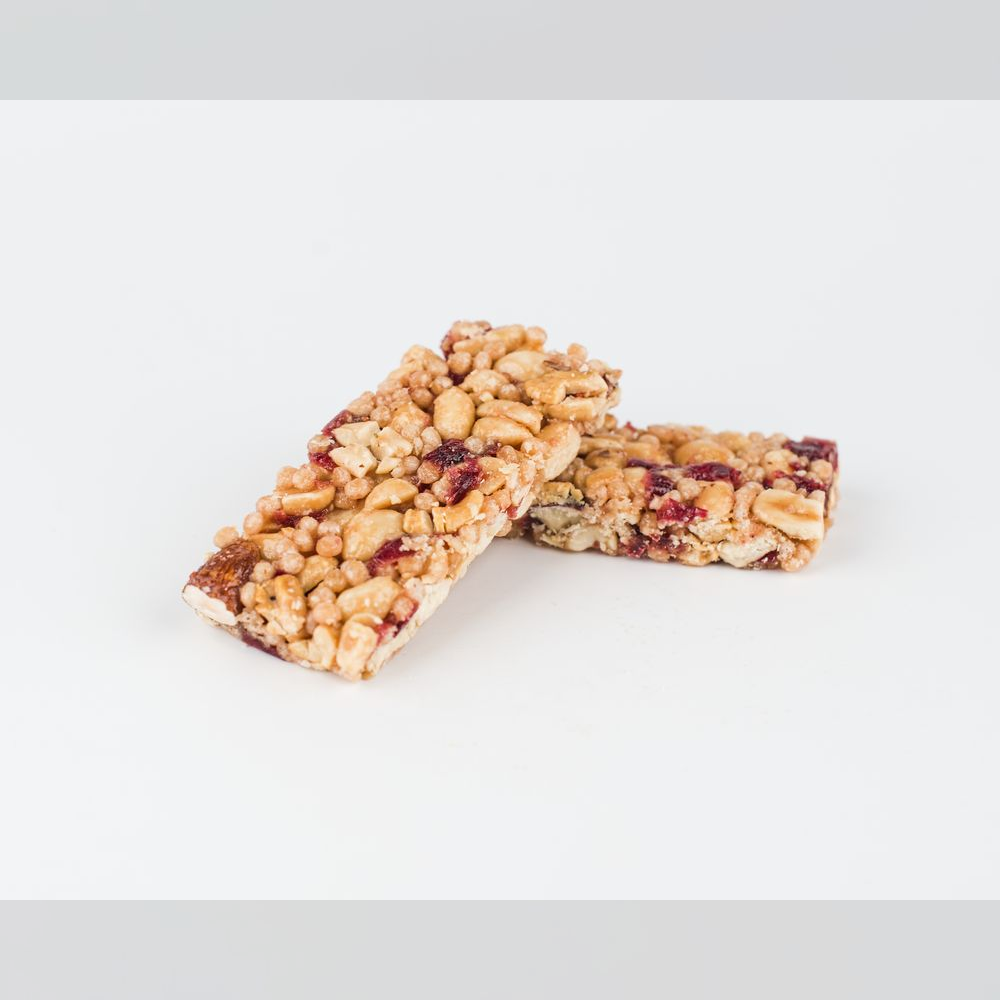 křupavý snack, 100% přírodní a raw, doslazeno medem a ovocem, vysoký obsah ořechů