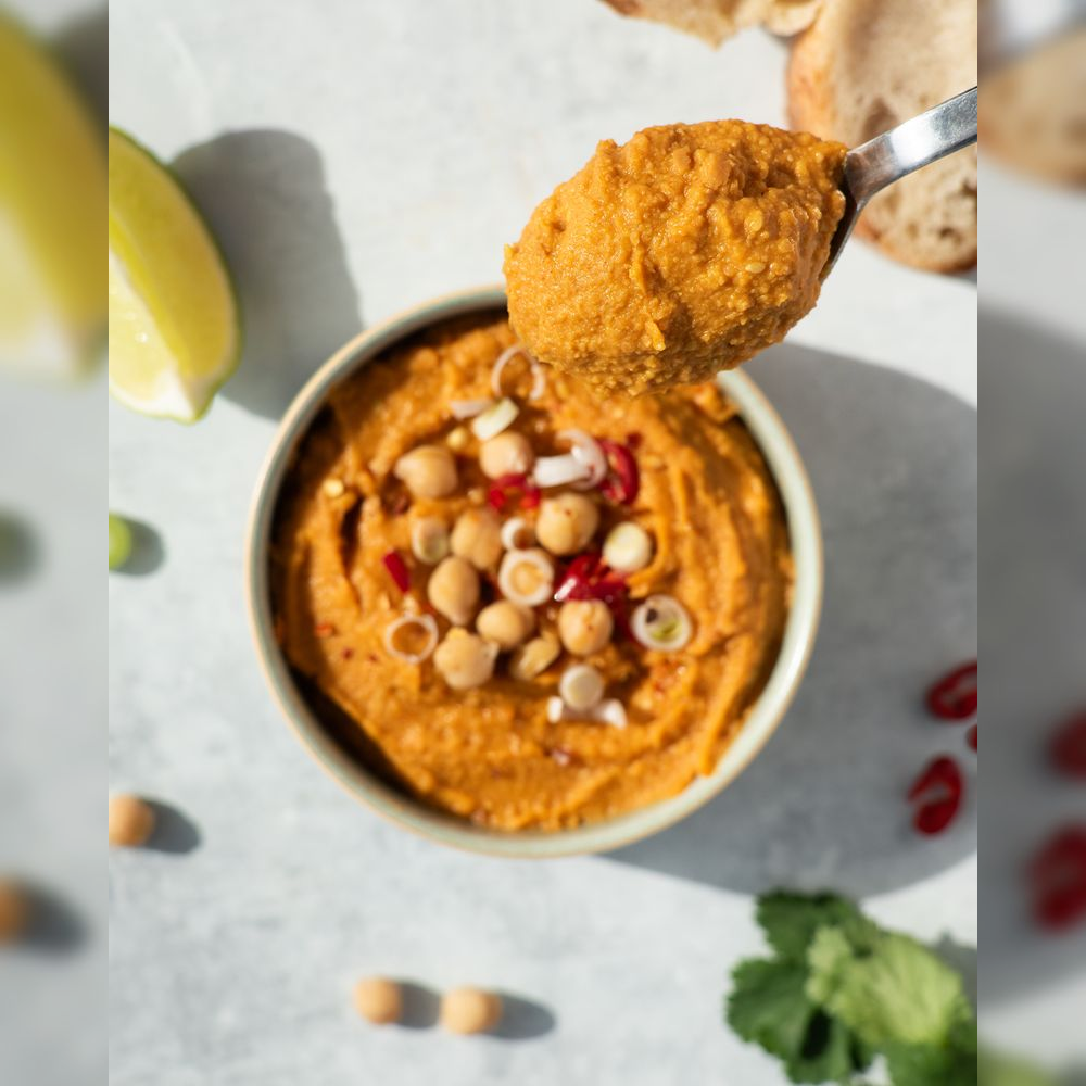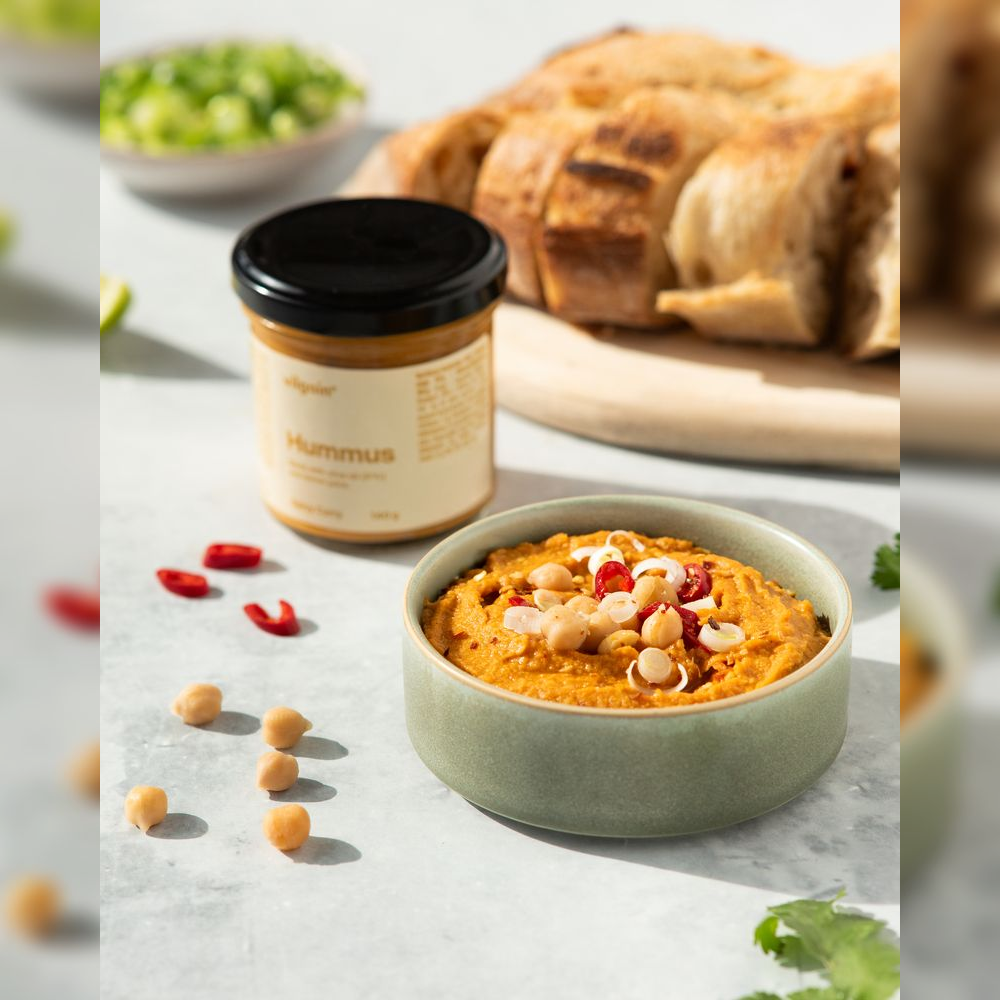 cizrnová pomazánka s olivovým olejem a tahini, 100% přírodní složení bez umělých aditiv, krémová textura a jemná chuť
