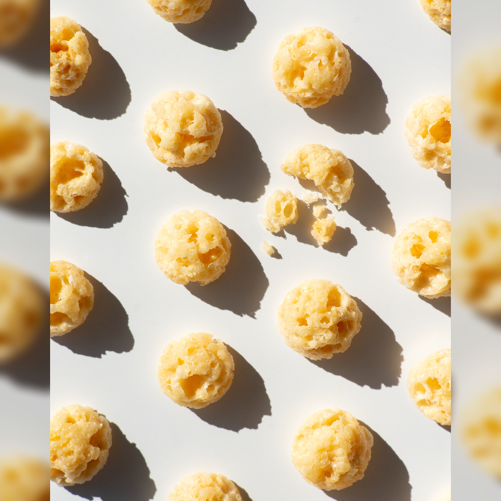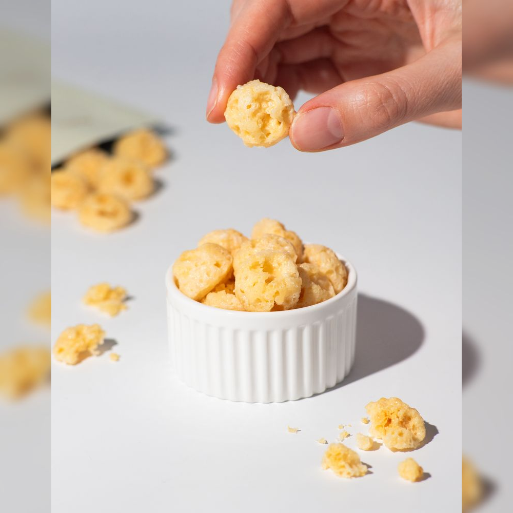 křupavý snack ze zralého sýru parmazánového typu, 50% obsah bílkovin, bez laktózy