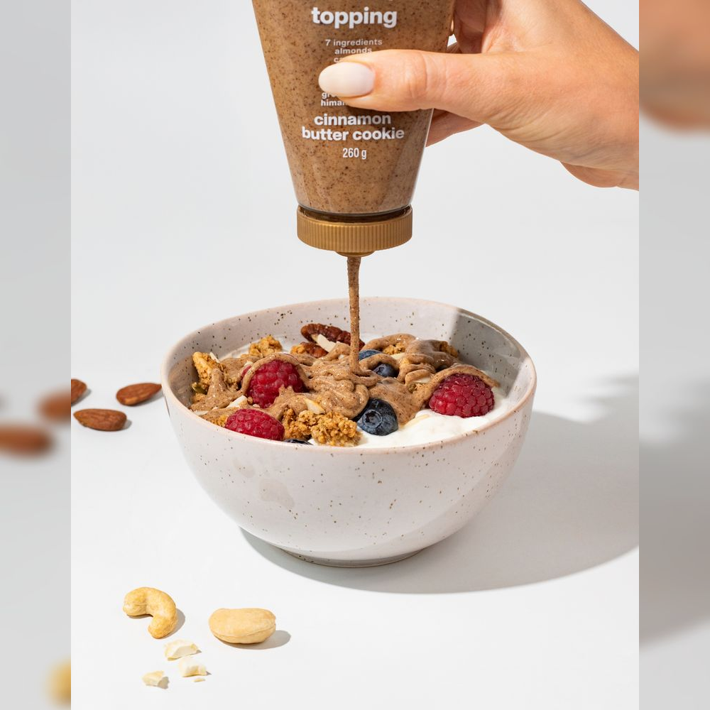 Vzali jsme naše oblíbené ořechové máslo a proměnili ho v extra krémový, hustý topping, po okraj nabitý oříšky. Stačilo přidat jen špetku skořice a vanilky a neodolatelná pochoutka byla na světě.