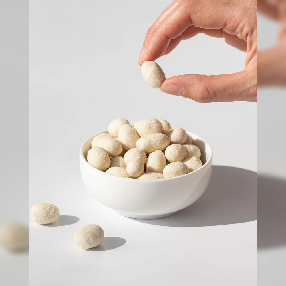 Ručně vybrané, čerstvé mandle jsme nejprve mírně nasucho opražili, a potom zalili pořádnou vrstvou kvalitní čokolády. Takto šetrně vyrábíme Vilgain Mandle v hořké čokoládě vždy v malých šaržích, aby se k tobě dostaly maximálně čerstvé a křupavé.