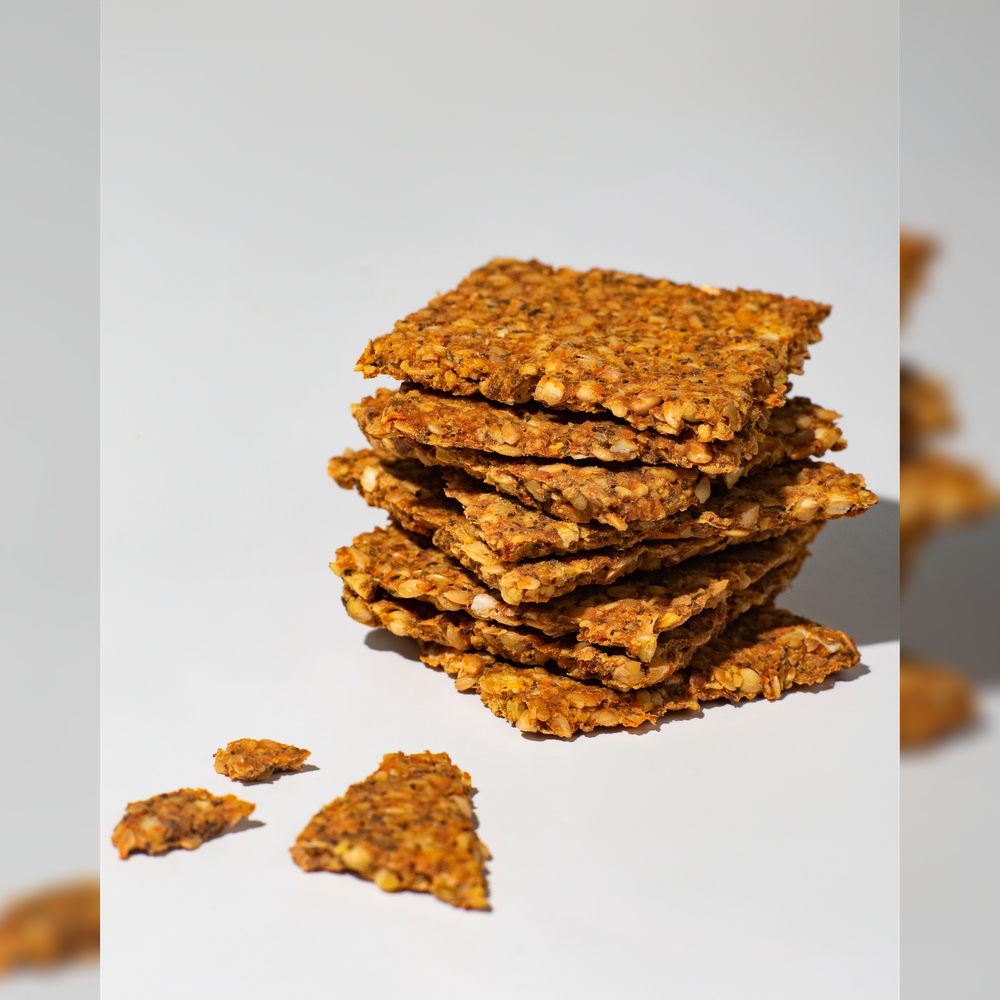 Vychutnej si jednoduchý, křupavý snack z kvalitních rostlinných surovin a vysokým obsahem bílkovin. Zkombinovali jsme oříšky, lněná semínka, pohanku a sušenou zeleninu pro nutričně vyvážené a zároveň chutné krekry.