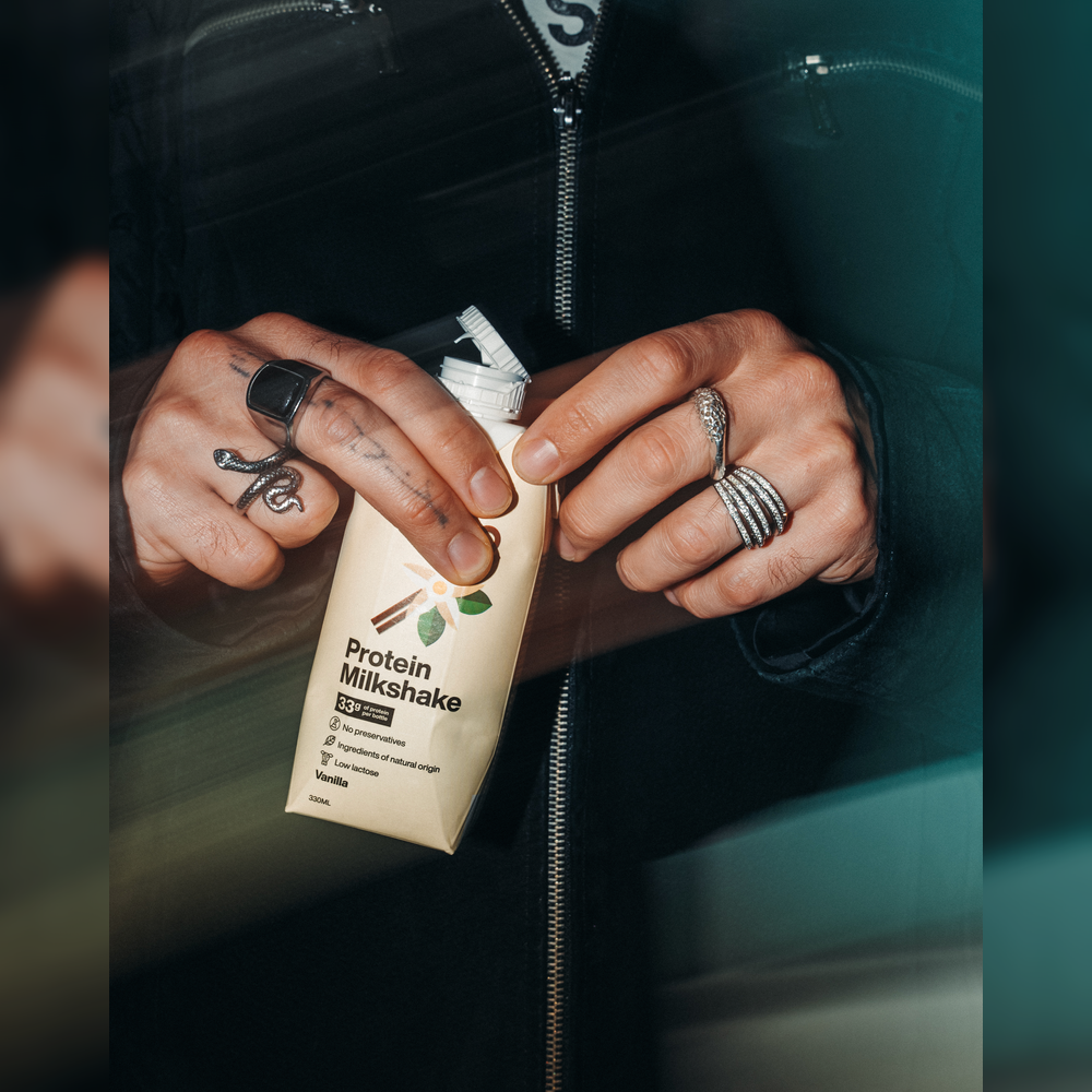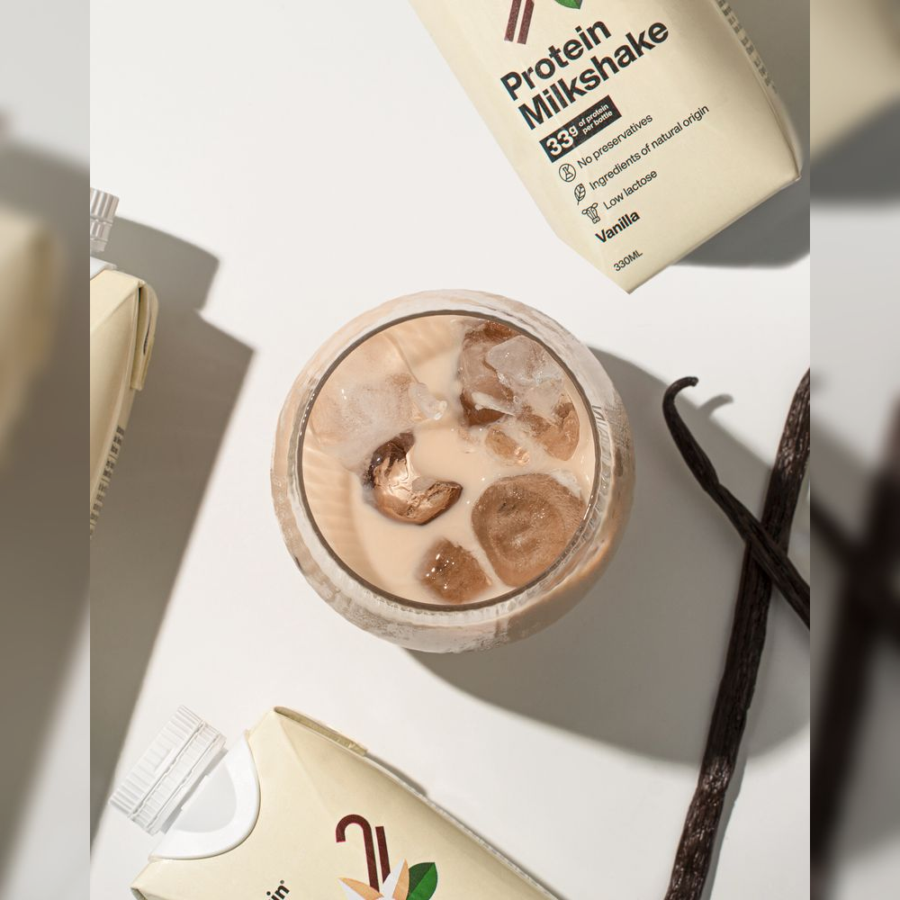mléčný proteinový nápoj s krémovou chutí, 33 g bílkovin na porci, s nízkým obsahem laktózy