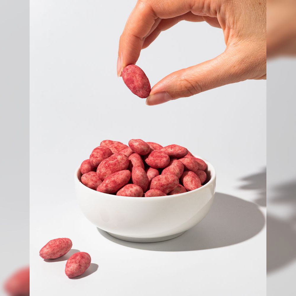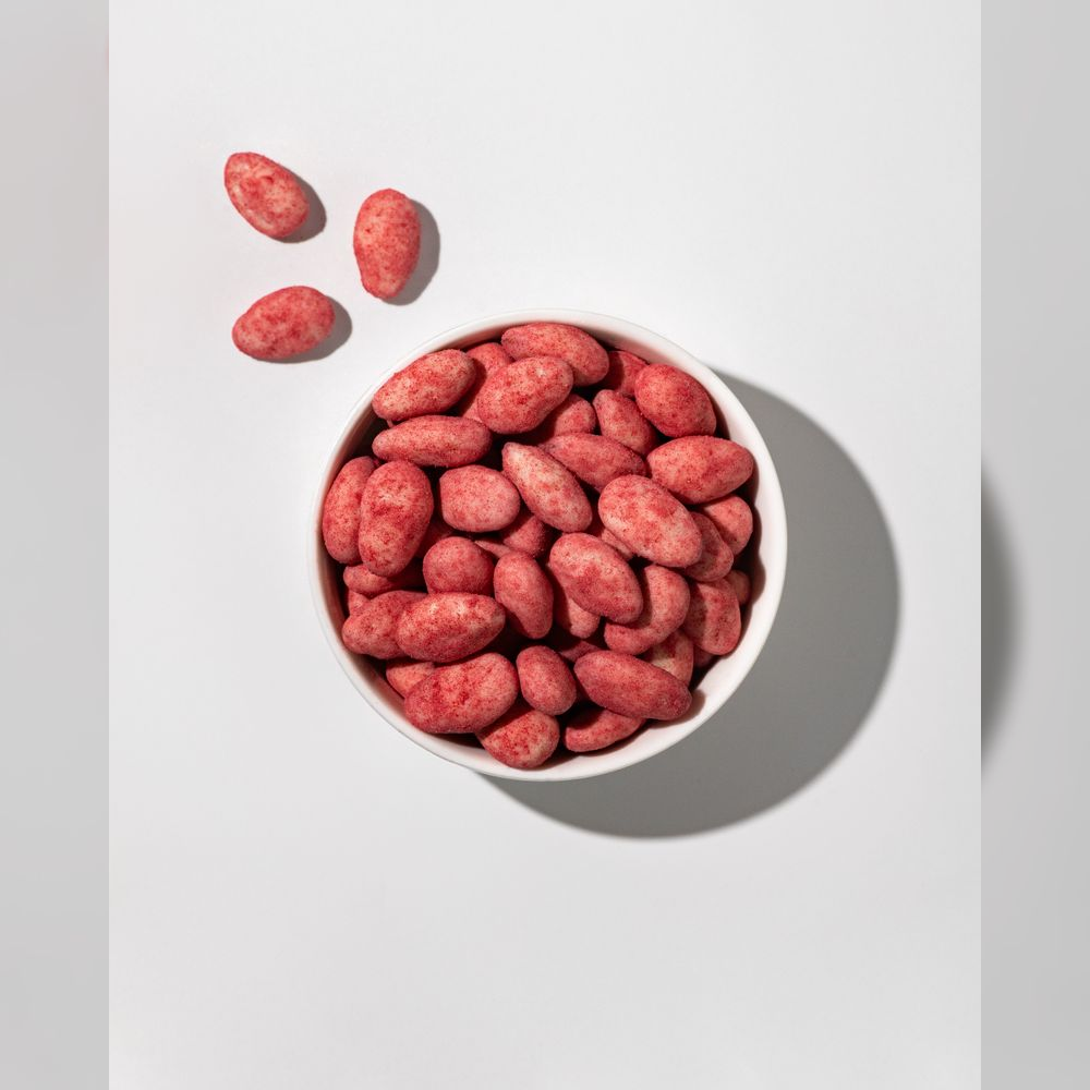 Vilgain Mandle v čokoládě – 3× bílá čokoláda v malinovém prášku 250 g