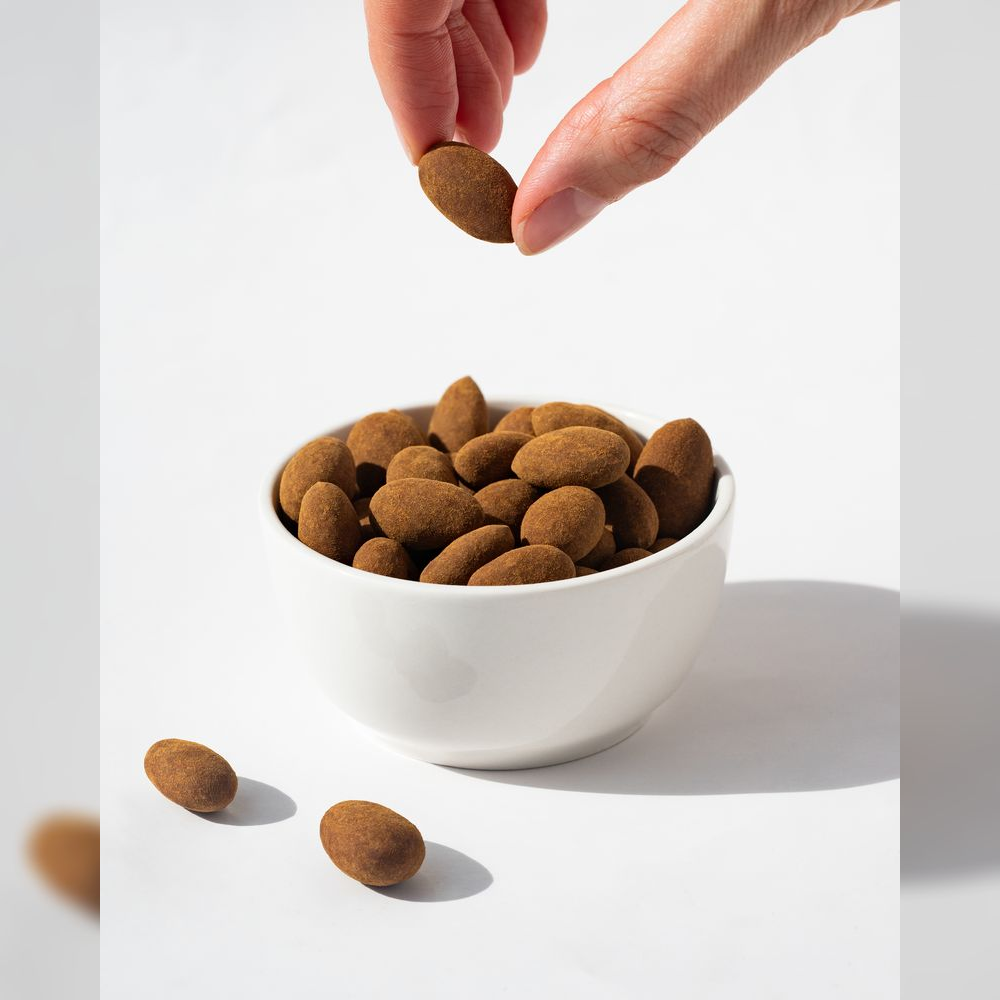 Vilgain Mandle v čokoládě – 3× mléčná čokoláda ve skořicovém prášku 250 g