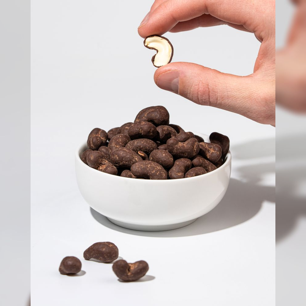 Vychutnej si ručně vybrané kešu zalité pořádnou vrstvou hořké čokolády a objev svět snacků plných chuti i prospěšných látek v jednom.