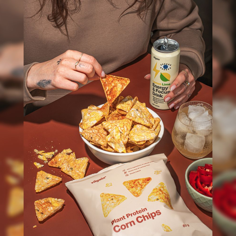 pomalu pečené kukuřičné chipsy na extra panenském olivovém oleji, zdroj rostlinných bílkovin, bez lepku a bez laktózy
