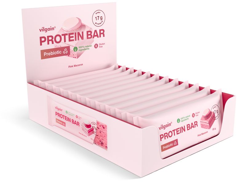 Vilgain Prebiotic Protein Bar – 12× pink macaron 55 g