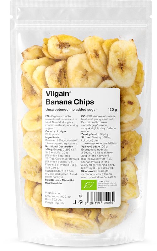Vilgain Bananové chipsy BIO – 3× neslazené 120 g